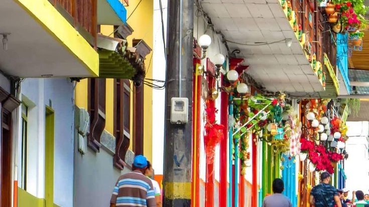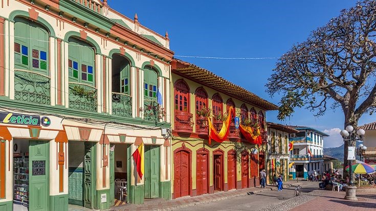 La Calle del Comercio, con sus fachadas coloridas y arquitectura colonial, es el corazón vibrante de la actividad comercial en Jericó.